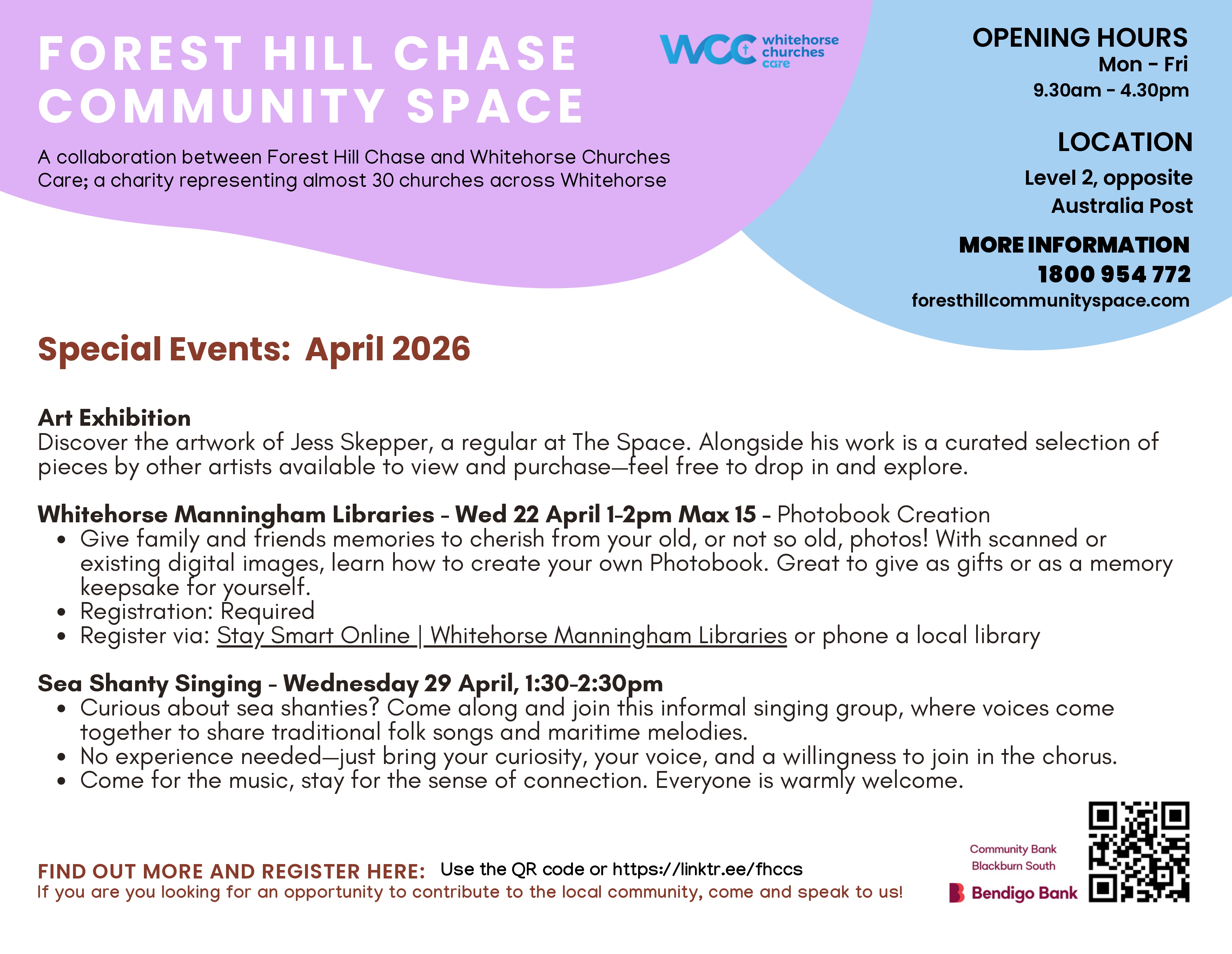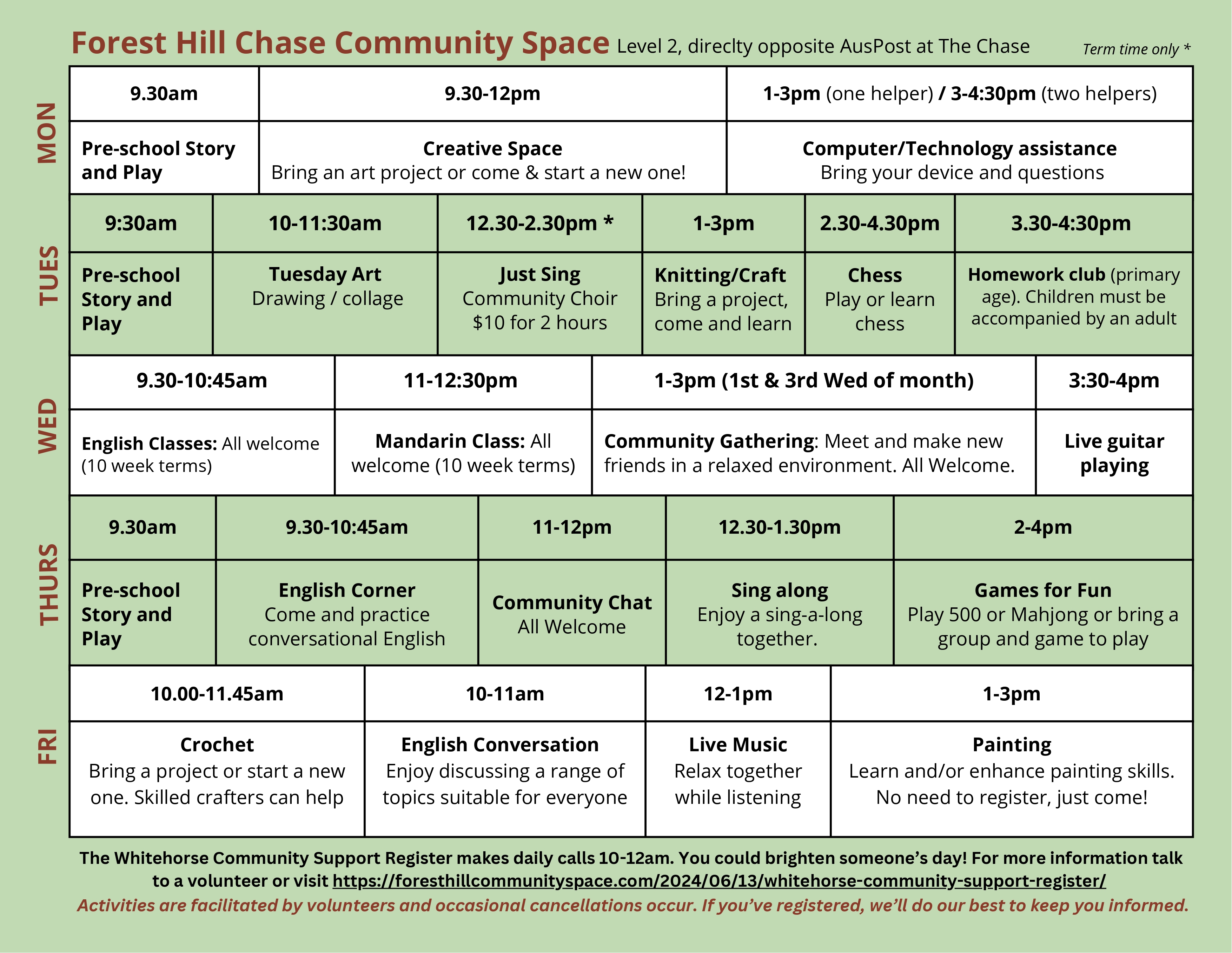 A collaboration between Forest Hill Chase and Whitehorse Churches Care; a charity representing almost 30 churches across Whitehorse.